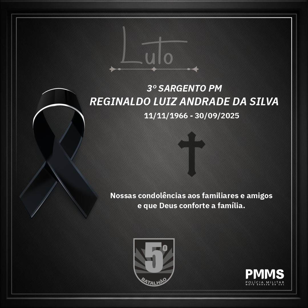 Coxim (MS) – A Polícia Militar do Estado de Mato Grosso do Sul lamenta profundamente o falecimento do 3º Sargento PM Reginaldo Luiz Andrade da Silva, integrante do 5º Batalhão de Polícia Militar de Coxim – MS.