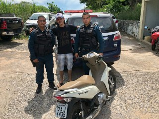 Em posse das informações a equipe deslocou em diligências, onde ao chegar no local se deparou com um matagal, dificultando a visibilidade dos policiais, no entanto após buscas minuciosas pelo local, foi localizada a motocicleta Biz de cor branca, abandonada dentro de um imóvel.