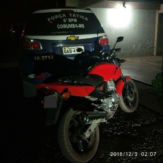 Corumbá (MS) – Sábado (08/12), por volta das 00:00 hora, a equipe de Força Tática foi informada que dois indivíduos em uma motocicleta estariam cometendo roubos na parte alta da cidade algumas horas antes e segundo detalhes das características de ambos, suspeita-se que são os mesmos que cometeram outros roubos dias atrás.