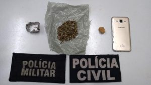 Na residência do homem de 25 anos, irmão do adolescente, foram localizados porções de substâncias análogas a maconha (pesando 10,1 gramas) e crack (pesando 7,0 gramas), o homem não estava na residência.