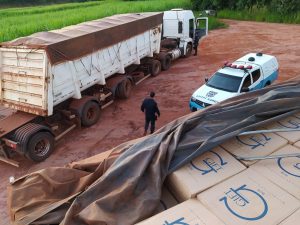 Itaquiraí (MS) – Na tarde de segunda-feira (22/02), por volta das 15h, uma equipe de Força Tática do 12º Batalhão de Polícia Militar, no âmbito da Operação Hórus, apreendeu, aproximadamente, 81.250 (oitenta e um mil e duzentos e cinquenta) pacotes de cigarros contrabandeados.