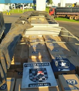 Mundo Novo (MS) – Na tarde de quinta-feira (18/02), por volta das 14h50min, uma equipe de Força Tática do 12º Batalhão de Polícia Militar, no âmbito da Operação Hórus, apreendeu 45.000 (quarenta e cinco mil) pacotes de cigarros de origem paraguaia e recuperou um veículo furtado no Estado do Paraná.