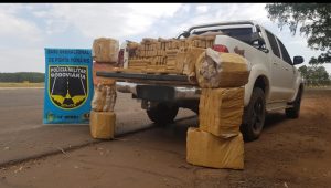 Ponta Porã/MS – A PMR apreendeu neste domingo(15/08) um veículo TOYOTA HILUX  com placas afixadas QBV 1J98, que estava “recheado” com drogas distribuídas em diversos  tabletes  nos bancos traseiros e porta malas do veículo.