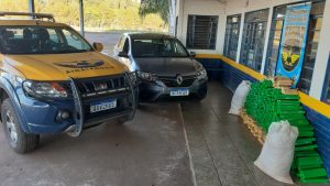 Ponta Porã/MS – A apreensão ocorreu neste sábado (15/05), na MS 164 Km 105 em Ponta Porã, quando os policiais abordaram um veículo Renault Logan, conduzido por um homem de 23 anos. No interior do veículo foram localizados centenas de tabletes e 2 sacos com droga a granel. A droga após pesada totalizou 365 quilos de maconha. O autor que é morador de contagem/MG, relatou aos policiais que foi contratado pelo valor de 5.000,00 para transportar a droga de Ponta Porã a Campo Grande e que teria alugado o veículo para cometer o ilícito.