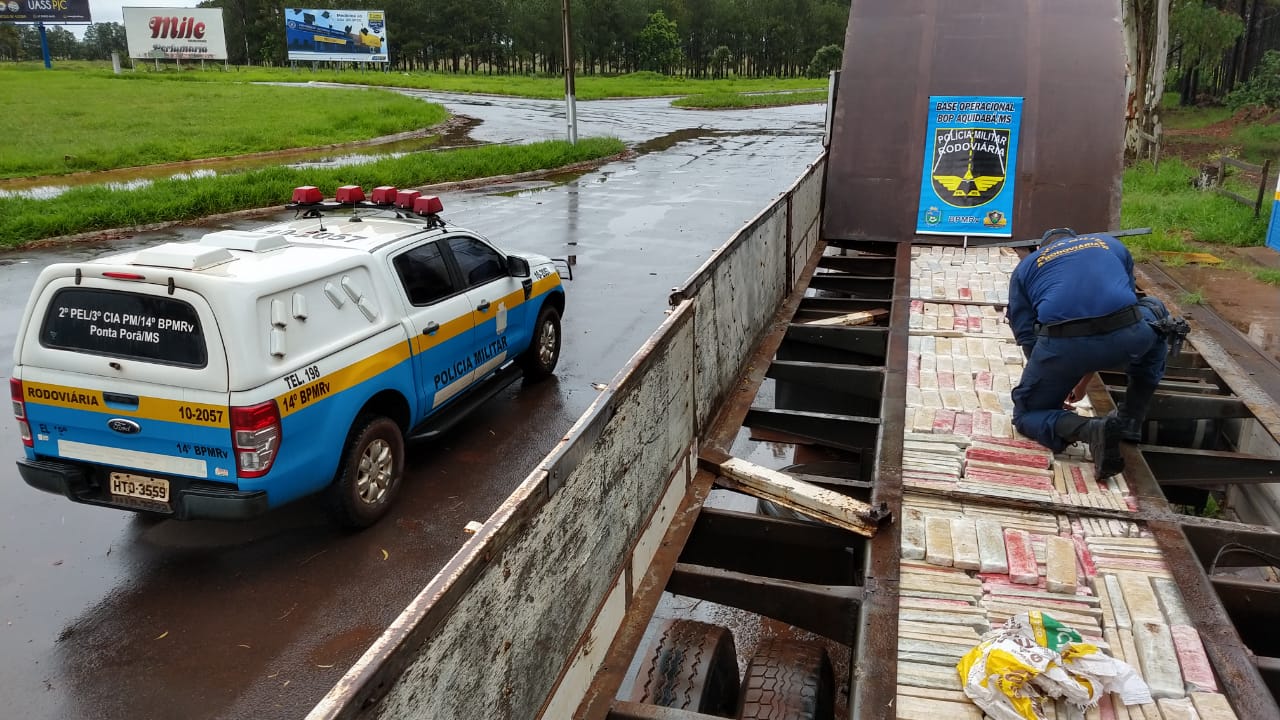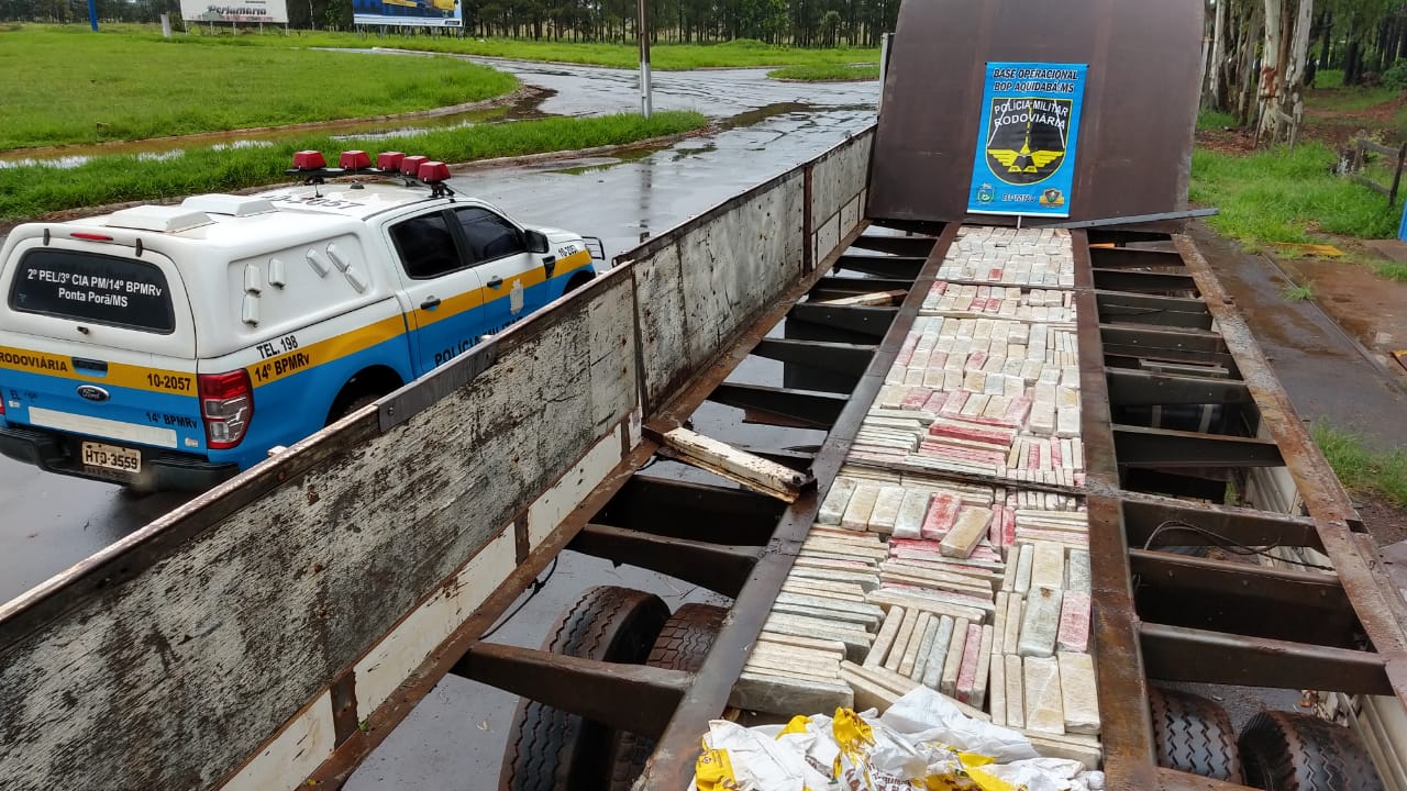 A apreensão ocorreu quando a equipe da Polícia Militar Rodoviária realizava policiamento ostensivo na rodovia MS-164, que liga os municípios de Ponta Porã X Maracaju. Ao dar ordem de parada a uma carreta, com placas de Mogiguaçu -SP, seu condutor, um homem de 44 anos, disse estar se deslocando à capital (Campo Grande-MS) onde carregaria gramas e as entregaria em Cuiabá-MT.
