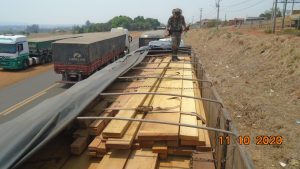 Campo Grande (MS) – Policiais Militares Ambientais de Cassilândia realizavam fiscalização hoje (11), na rodovia MS 306, na altura do km 1 e apreenderam dois veículos com cargas de madeira ilegais. A primeira apreensão foi de um caminhão Tractor Mercedes Benz, com uma carreta acoplada transportando carga em excesso de 7 m³, ao que constava na autorização ambiental (Documento de Origem Florestal – DOF) e na nota fiscal.