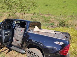 Campo Grande (MS) – Policiais Militares Ambientais de MS e Policiais Militares Ambientais da Força Verde (PR) realizavam fiscalização ambiental conjunta pela Operação Hórus, no município de Itaquiraí, na região próxima da divisa de Estado, hoje (23) no final da manhã, quando duas caminhonetes, uma Toyota Hilux e uma Chevrolet S10 furaram o bloqueio e se evadiram. Uma terceira caminhonete, também uma S10, ao avistar a barreira policial efetuou uma manobra brusca de retorno e tomou rumo ignorado.