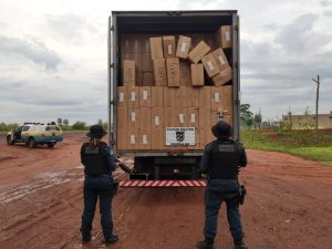 Naviraí (MS) – Na noite de terça (10/11), por volta das 20h, uma equipe da Força Tática do 12º Batalhão de Polícia Militar, no âmbito da Operação Hórus, apreendeu 40.000 (quarenta mil) pacotes de cigarros contrabandeados.