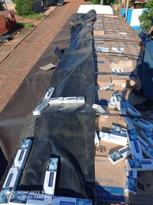 Durante policiamento preventivo e ostensivo pelo centro da cidade de Itaquiraí, a equipe de Força Tática logrou êxito em localizar no pátio de uma oficina mecânica, uma carreta carregada com, aproximadamente, 1.000 (mil) caixas, equivalente a 50.000 (cinquenta mil) pacotes de cigarros da marca “San Marino”, produto de contrabando oriundo do Paraguai.