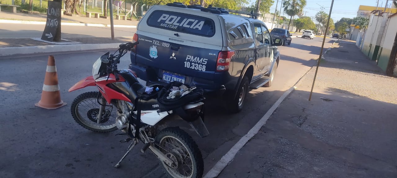 Na tarde deste sábado, 5 de julho de 2025, por volta das 14h04, a equipe da rádio patrulha da Polícia Militar de Corumbá realizou uma abordagem durante operação de bloqueio policial e fiscalização de trânsito na Rua Porto Carreiro, em frente ao Centro Esportivo da cidade. Durante a fiscalização, os policiais abordaram um condutor de motocicleta, que não possuía Carteira Nacional de Habilitação (CNH) e conduzia um veículo sem placa traseira.
