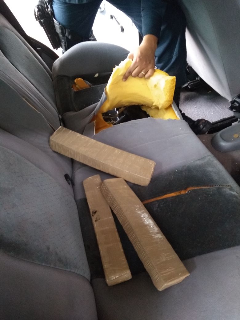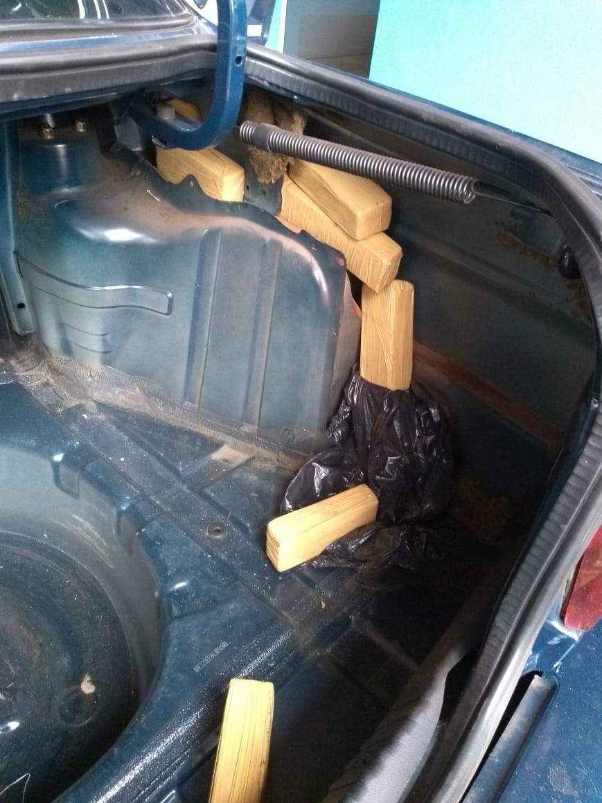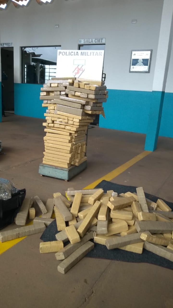 Amambai (MS) – No desenrolar da Operação Tiradentes II, a equipe do 3º Pelotão da 3ª Companhia Independente de Polícia Militar – 3ª CIPM sediado em Coronel Sapucaia – MS, divisa com a cidade paraguaia de Capitan Babo – PY, em patrulhamento ostensivo e preventivo pelas vias urbanas do município fronteiriço, se deparou com um caminhão e um veículo de passeio, os condutores dos veículos ao avistarem a viatura policial adentraram repentinamente a uma propriedade rural, momento que foi possível abordar o veículo FORD/ESCORT placa de São Paulo-SP, o condutor relatou que estava transportando maconha no porta malas e nos bancos do carro.