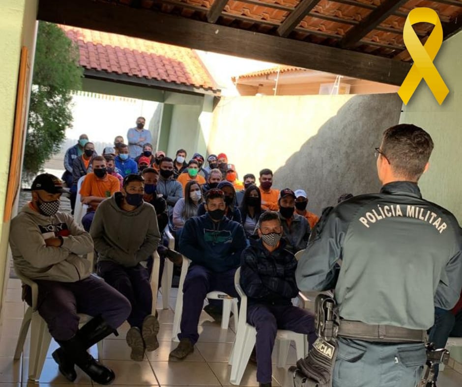 Três Lagoas (MS) – No dia 23/05, o efetivo do Pelotão de Trânsito do 2º BPM, realizou Palestra Educativa alusiva ao MAIO AMARELO, para a Empresa MENSURA SERVIÇOS FLORESTAIS.