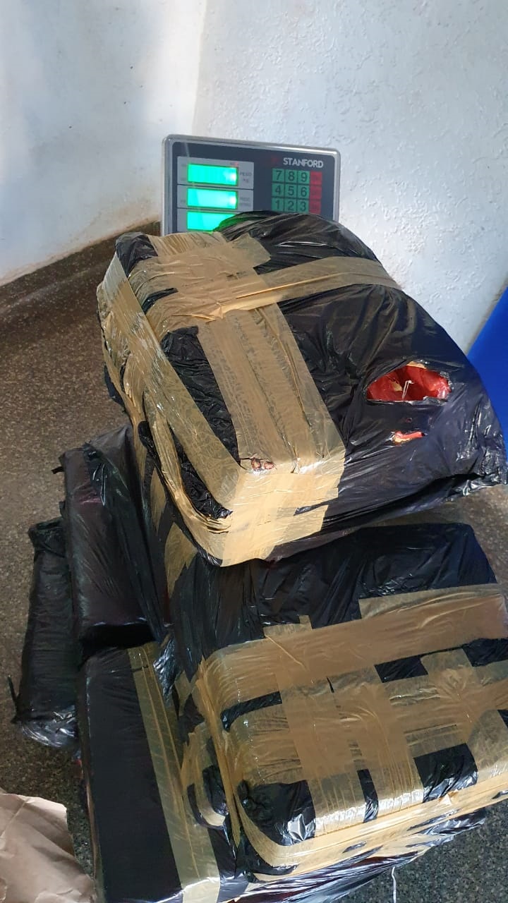 No interior do veículo, um Fiat/Pálio, com placas de São João da Boa Vista/SP, foi encontrado 07 (sete) fardos de maconha, pesando 130,600 Kg (cento e trinta quilos e seiscentas gramas) e 06 (seis) pacotes de Skank, pesando 3,100 Kg (três quilos e cem gramas). A droga e o veículo foram encaminhados ao 1º Distrito Policial em Ponta Porã para as providências cabíveis.