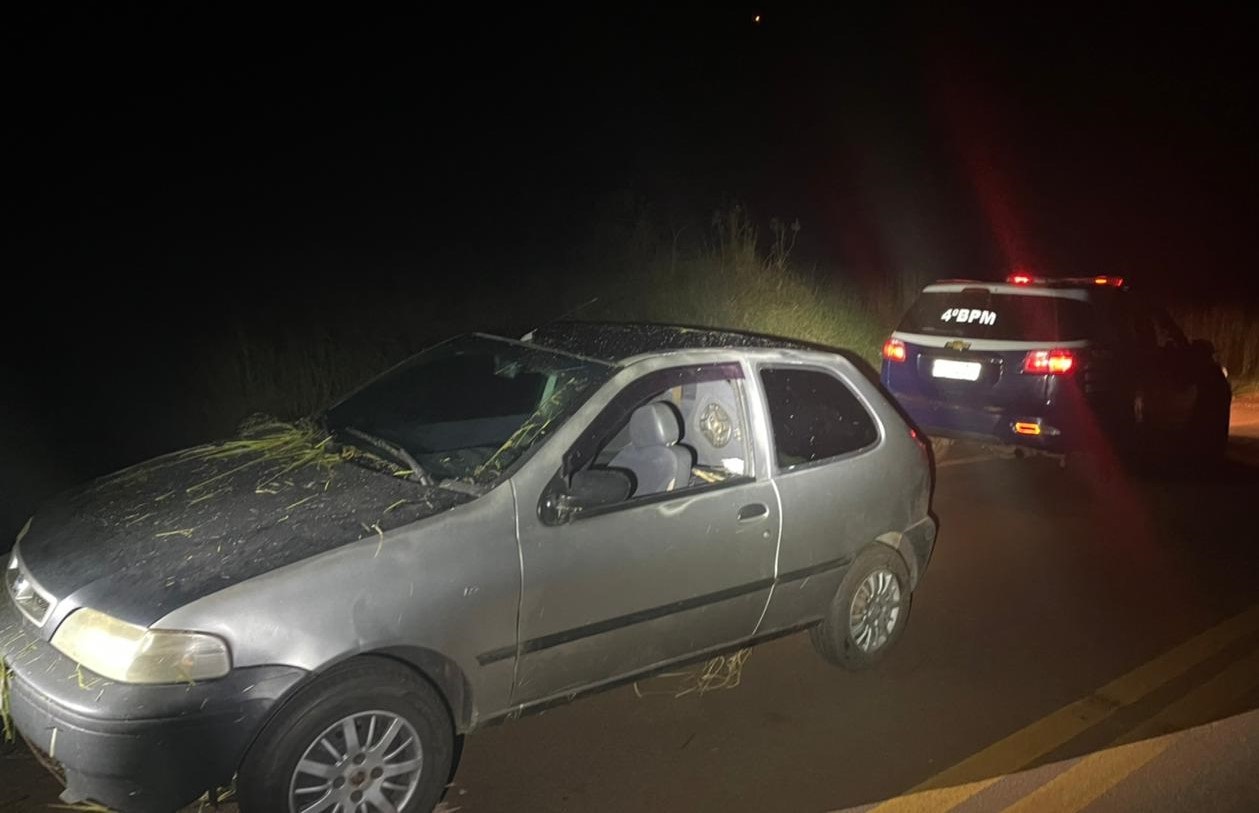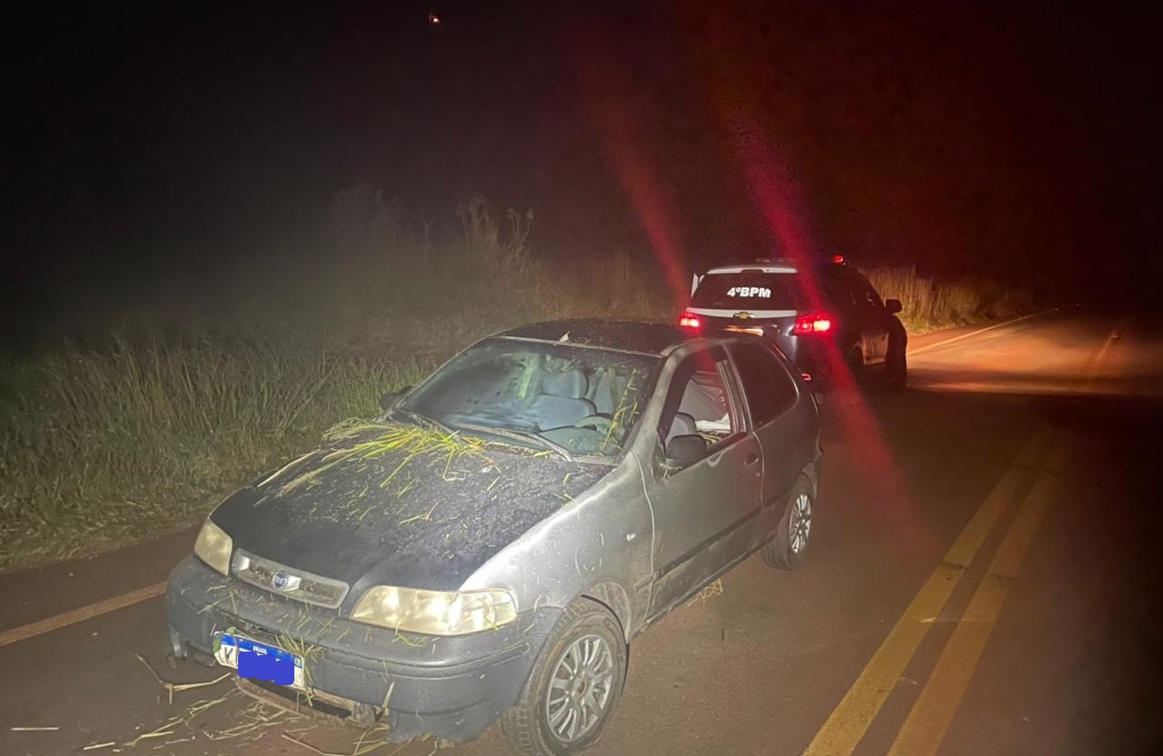 Foi realizado acompanhamento tático, sendo que ao passar pelo assentamento Itamarati, o veículo tomou distância considerável, sendo que próximo ao Rio Dourados, o condutor abandonou o carro no matagal as margens da rodovia e tomou rumo ignorado adentrando a mata densa, não sendo possível localizá-lo devida a escuridão.