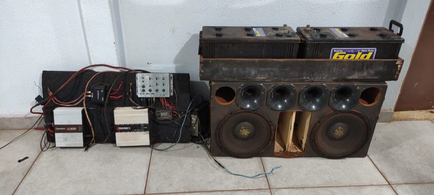O mesmo foi encaminhado juntamente com o veículo para a Delegacia de Polícia Judiciaria local para as devidas providências, foi recolhido duas baterias com uma caixa de som com quatro twiter e dois alto falantes de 12 polegadas, dois módulos, uma fonte, um crossover e um voltmetro.