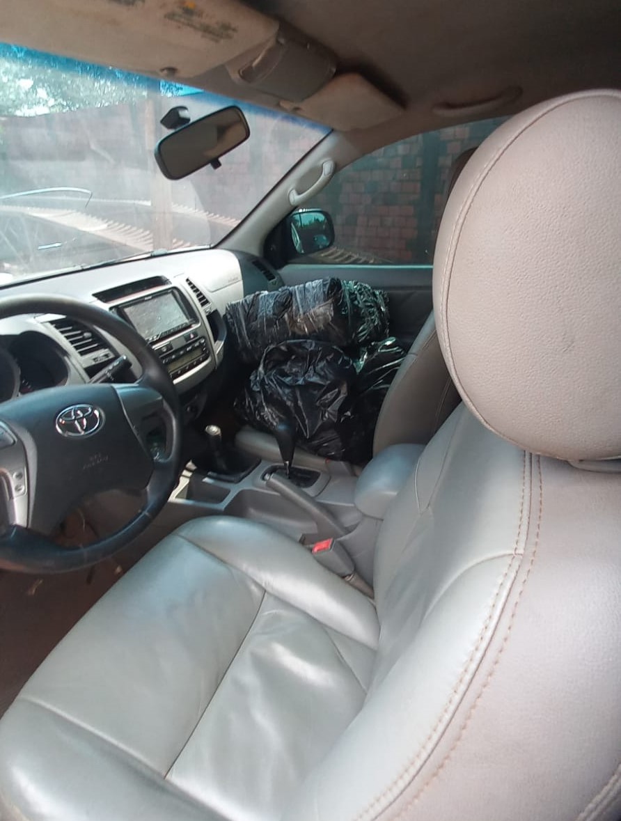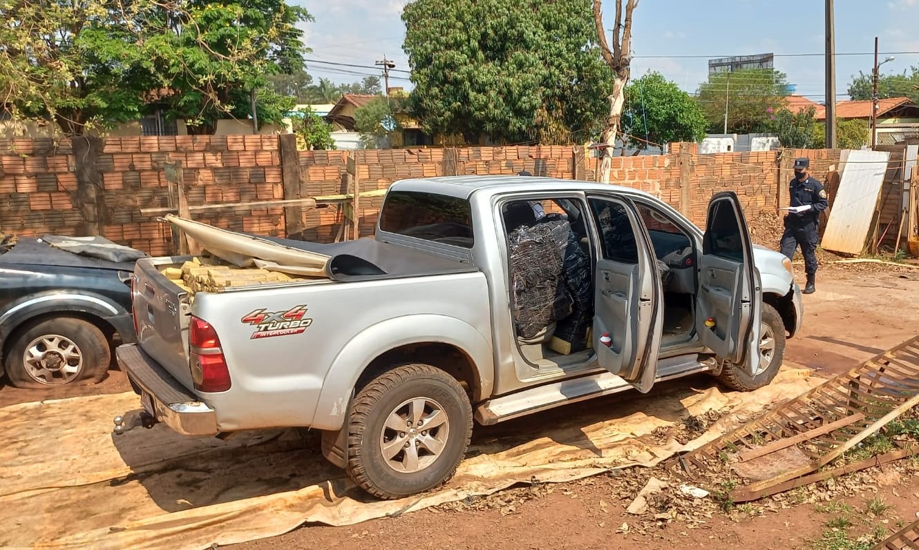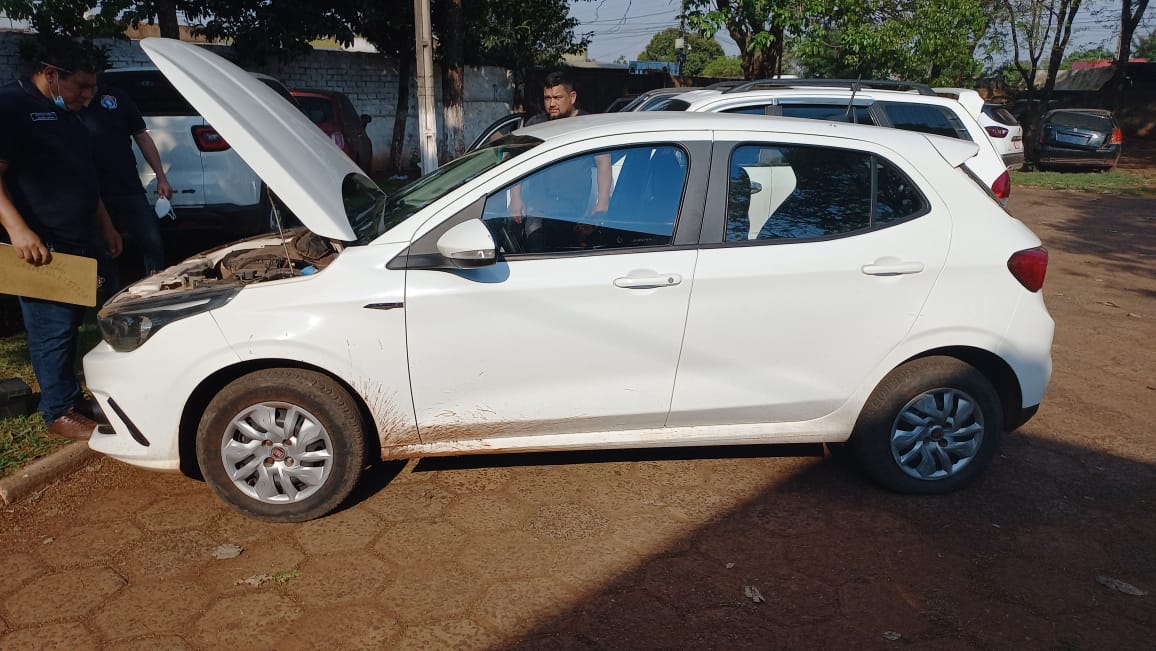 E em dado momento o condutor da Hilux, entrou em um lava jato, situado no cruzamento das ruas 12 de Junho e Jorge Casaccia, abandonando o veículo e fugindo pulando os muros das residências, quando, junto com os agentes da Polícia Nacional foi realizado um cerco, localizando 3 (três) indivíduos, sendo dois homens de 24 e 25 anos respectivamente, ambos paraguaios e uma mulher de 29, de nacionalidade brasileira, a mulher estava em um Fiat Argo de cor branca, placas do Paraguai, ela estaria dando apoio na fuga.