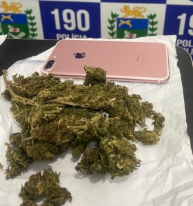 Na abordagem foi identificado o condutor do veículo, um homem de 21 anos e estava em companhia de uma adolescente de 16 anos, foi encontrado uma quantia de maconha no console do veículo, o homem relatou que é usuário. Após checagem dos abordados foi constatado que o homem detinha um Mandado de Prisão em aberto, imediatamente o autor recebeu voz de prisão.