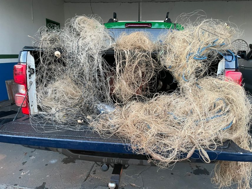 Com relação aos petrechos ilegais, a quantidade de redes de pesca retiradas dos rios ainda continua chamando a atenção. Houve a apreensão e retirada dos rios de 27 redes de pesca e na operação anterior (2020) foram 34 redes, apesar de a pesca estar fechada em ambas as operações.