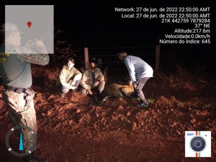 Ao chegar no local, Policiais Militares Ambientais mantiveram a área isolada e acionaram o médico veterinário para realizar a contenção do animal com dardo tranquilizante. Por volta das 18h30, com o animal, um macho adulto, já sedado e avaliado pelo profissional a captura foi efetivada. A onça foi monitorada até se reestabelecer da sedação e foi solta em uma área pantaneira distante da cidade.