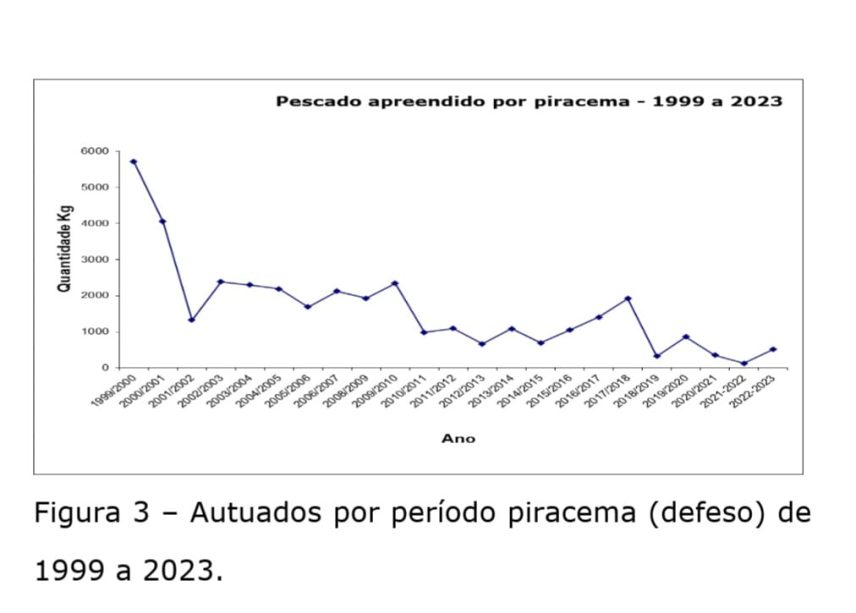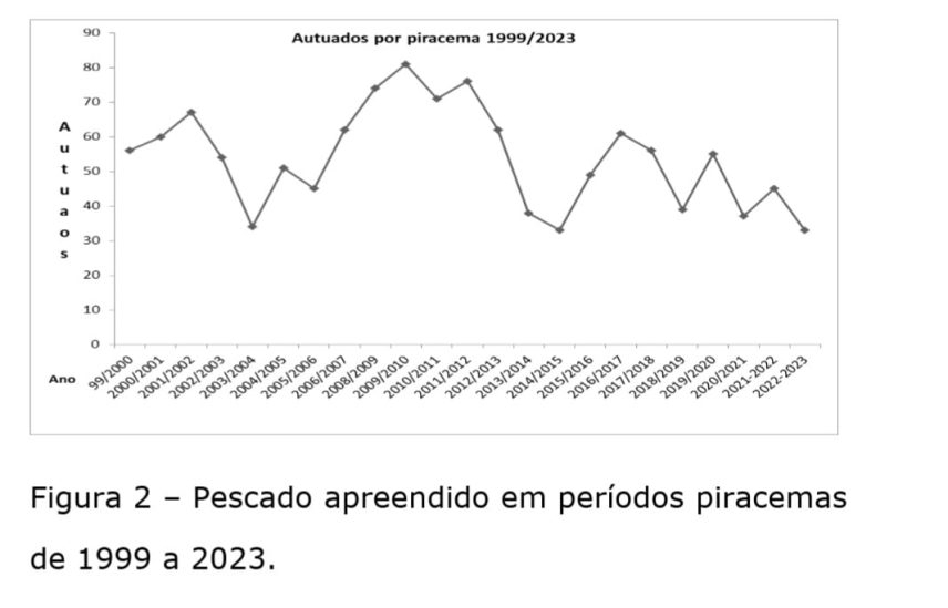 Figura 3 – Autuados por período piracema (defeso) de 1999 a 2023.