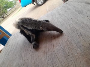 A tamanduá-bandeira carrega seus filhotes no dorso e, por essa razão, em muitos casos de atropelamento o filhote acaba escapado. Normalmente quando o veículo bate na mãe, o filhote “voa” com o impacto do veículo sem ser atingido, dependendo principalmente do tamanho do veículo que envolvido no acidente. O filhote foi recolhido, não apresentava ferimentos e foi alimentado e hidratado e será encaminhado ao Centro de Reabilitação de Animais Silvestres (CRAS), em Campo Grande para a possível reintrodução na natureza. O motorista causador do acidente não socorreu o animal e nem avisou sobre o filhote.