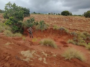 Além de tudo, também foi constatado dentro da área gradeada, à margem da serra, vários pontos com processos erosivos pluviais dos tipos laminar, sulcos e voçorocas, causando um grande carreamento do solo gradeado para dentro do leito do córrego das Antas, o qual tem suas nascentes abaixo da área gradeada e dentro da área da propriedade vistoriada.