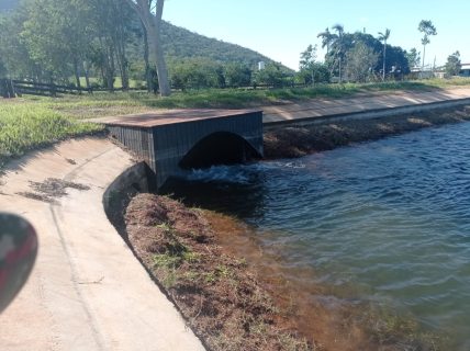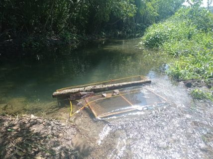 Estrutura de captação dentro do rio Anhumas.