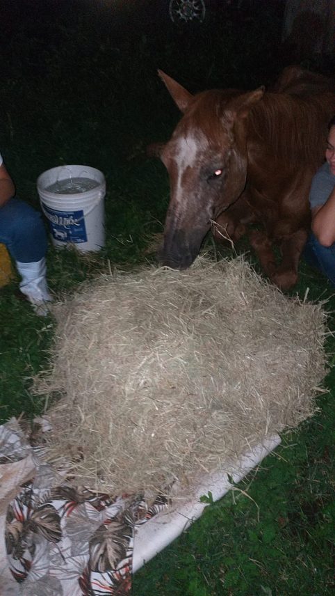 O equino, uma fêmea, estava doente, desnutrido, com feridas pelo corpo e agonizante e, dessa forma, o médico veterinário solicitou o resgate urgente para uma clínica, caso contrário o animal ele morreria em pouco tempo, devido ao estado grave de saúde. Os Policiais, então, juntamente com populares, colocaram a égua na viatura mesmo, pois não haveria tempo de esperar por outro veículo, e a levaram para a clínica Pronto Ecos, localizada no próprio bairro, pertencente a outro médico veterinário amigo de Willians.