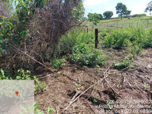 Na fazenda do autuado, os Policiais verificaram em uma área de 5.000 m² o corte de vegetação nativa, aterramento do solo e construção de edificações de alvenaria próximas de nascentes e olhos d’água, não respeitando delimitação mínima prevista na legislação ambiental para as áreas protegidas. Além disso, a falta de isolamento das nascentes e pelo fato do terreno apresentar declive acentuado, os sedimentos carreados das áreas degradadas estavam causando assoreamento de parte das áreas de mananciais protegidas.