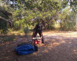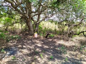 Restos de fogueiras e tambor de gasolina próximos à vegetação.