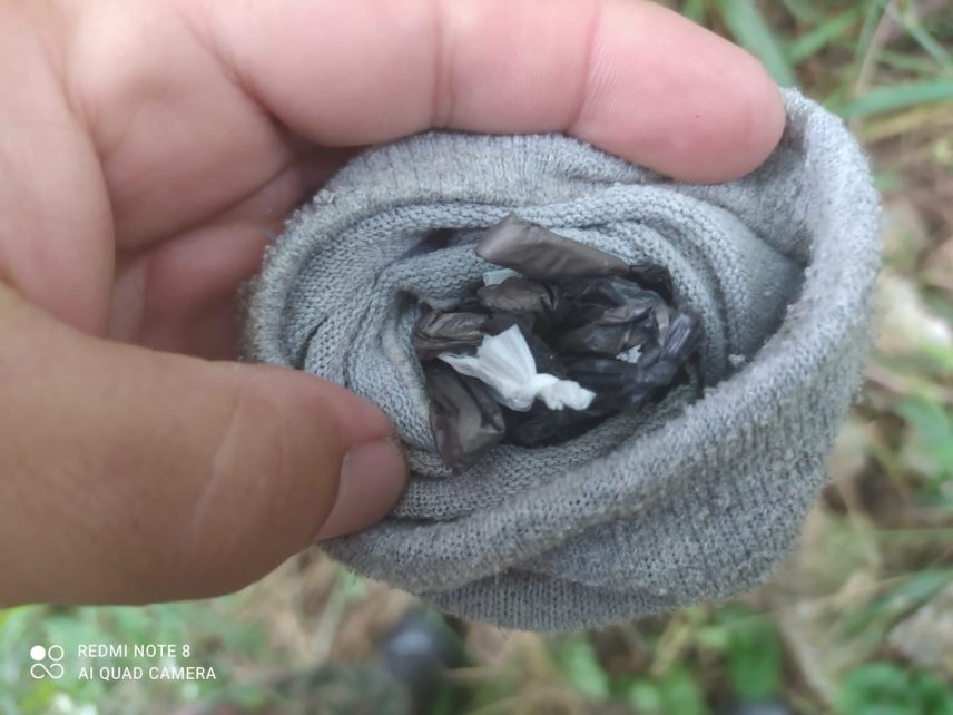 A equipe conversou com algumas pessoas e nada foi encontrado de irregular, porém, andando nas imediações, encontrou uma pequena meia abandonada em local ermo, um pouco distante de onde estavam as pessoas, no interior da qual, havia 27 pinos plásticos amarrados a pequenas sacas plásticas contendo cocaína. Não foi encontrado o proprietário da droga, porém, a equipe calcula que o traficante abandonou o material ao perceber que a embarcação da PMA iria realizar fiscalização no local. O material foi encaminhado à delegacia de Polícia Civil.