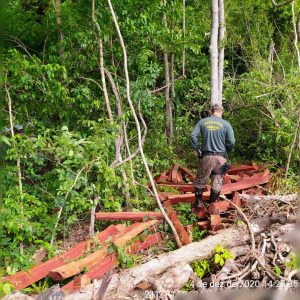 Campo Grande (MS) – Depois de que um vídeo circulou no início deste mês nas redes sociais em que estaria havendo crime ambiental de exploração ilegal de madeira em uma fazenda, onde uma pessoa afirmava que iria enterrar madeira, a PMA localizou a propriedade no município de Nioaque, a 40 km da cidade, junto com outros órgãos, no dia 2 de novembro.