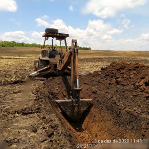Drenos efetuados para diminuir a unidade da várzea.