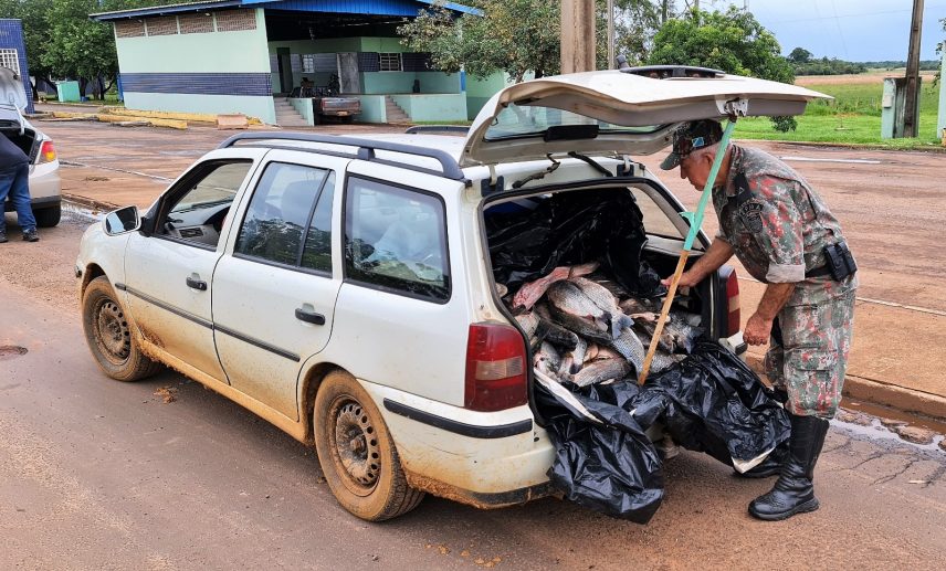 Campo Grande (MS) – Durante fiscalização ambiental na rodovia BR 487 no município, Policiais Militares Ambientais de Naviraí, que trabalham na operação Pesca Aberta, abordaram ontem (3) à tarde, um veículo VW Parati, onde estavam dois pescadores profissionais, que retornavam de uma pescaria no rio Paraná, e tinham como destino o estado do Paraná.
