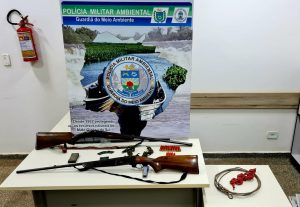 Campo Grande (MS) – Dois caçadores, de 31 e 45, foram surpreendidos por Policiais Militares Ambientais de Naviraí, que trabalham na operação Hórus, ontem (9) à noite, quando se dirigiam para a prática de caça ilegal, com armas e munições ilegais, em uma estrada vicinal conhecida como N-S 1, nas proximidades do perímetro urbano de Naviraí.
