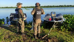 Campo Grande (MS) – Durante fiscalização hoje (23) pela madrugada no rio Paraguai, próximo à foz do rio Apa no município de Porto Murtinho, Policiais Militares Ambientais de Porto Murtinho e Campo Grande, que trabalham na operação Hórus, prenderam dois pescadores amadores, praticando pesca com petrechos proibidos.