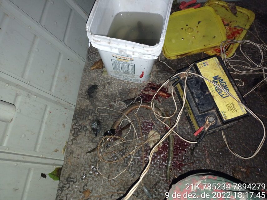 O infrator afirmou que já havia armado três anzóis de galho, que foram retirados pelos Policiais e que os peixes muçum utilizados como iscas teriam sido capturados em uma lagoa na sua propriedade, pesca esta, também proibida. Ele iniciava a pescaria ilegal e não tinha conseguido capturar nenhum peixe ainda no rio, porém, a ideia, segundo o pescador, era armar vários anzóis de galho no rio Coxim na região onde foi abordado. Foram apreendidos: 12 muçuns, que estavam vivos e foram soltos no rio, o barco, o motor de popa e 14 anzóis de galho.