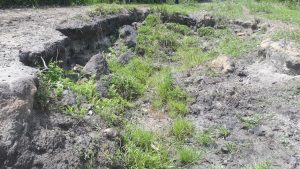 Erosões causadas pela falta de conservação do solo, agravadas pelo pisoteio do gado.