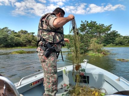 Durante os trabalhos, a equipe também retirou do rio, duas redes de pesca, medindo 100 metros. Os Policiais não localizaram os infratores que haviam armado as redes de pesca. Cerca de 7 kg de peixes que estavam presos aos petrechos ilegais foram soltos.
