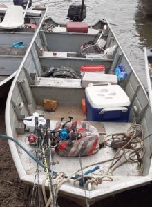 Barco, motor e materiais de pesca apreendidos.