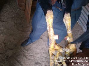 Os animais eram mantidos em gaiolas de madeira e de ferro, algumas extremamente apertadas, especialmente as de madeira, com restrição de movimentos, privação de luz solar e circulação aérea inadequada, o que, por si só, caracteriza-se maus-tratos. Além disso, havia uma arena, onde eram treinados os animais para as brigas em rinhas. O material foi apreendido, além de 44 galos domésticos da espécie galo-índio (Gallus gallus domesticus). Alguns animais apresentavam diversos ferimentos na crista e peito e apresentavam-se mutilados, com as esporas cortadas.