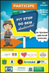 No sábado (5), dia Internacional do Meio Ambiente, além da sede do Batalhão, a arrecadação acontecerá na Praça do Rádio Clube, no centro da cidade, onde será realizado o “Pit Stop do Bem Ambiental”, blitz educativa, com distribuição de folhetos informativos de Educação Ambiental e mudas nativas em troca de alimentos. Os alimentos arrecadados serão destinados às famílias dos alunos do Projeto Florestinha e a famílias cadastradas na Associação Amor pela Vida.