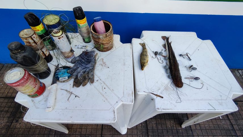 Ao chegarem, os Policiais perceberam várias pessoas embarcadas realizando captura de pescado e, quando elas perceberam as equipes, evadiram-se pela vegetação margeando o rio, abandonando embarcações, pescado e petrechos ilegais. Não foi possível deter nenhuma das pessoas, porém foram apreendidos: 6 (seis) barcos de alumínio, 2 (dois) remos e um motor, três anzóis de galho (petrecho proibido), oito linhadas, um peixe da espécie jurumpensem e um piau-três-pintas, ambos abaixo da medida permitida por lei (crime ambiental. O pescado será doado para instituições filantrópicas. Os Policiais continuam em vigilância no local. O material foi recolhido ao quartel da PMA e a Polícia Federal investigará a autoria do crime ambiental.
