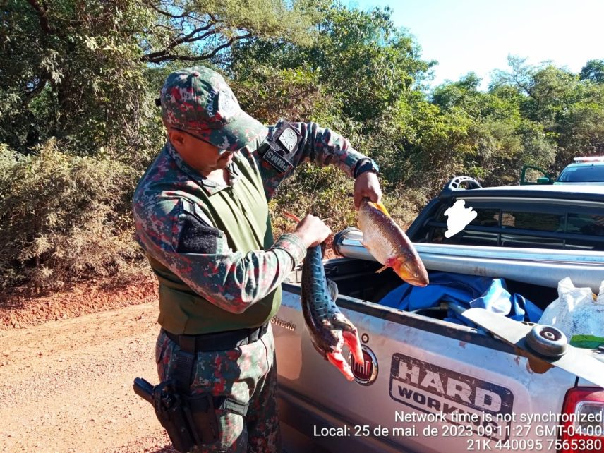 Dentre os exemplares, estavam um Pintado com tamanho abaixo do permitido, um peixe da espécie Dourado, cuja captura está proibida, além de piavuço, pacupeva e um exemplar de raia. Em razão disso, o homem foi preso e encaminhado à delegacia de Porto Murtinho. Também, foi autuado em R$ 6.422,00, e teve o veículo e os pescados apreendidos.