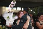 A senhora Isadora Chaves Cervelati, mãe do Soldado PM Estéfano José Cervelati (in memoriam), junto da sua nora sra Elaine Cervelati, e seus netos Lucas e Walesca, receberam da Cabo PM Tatiane e da Cabo PM Deisy, uma homenagem em nome dos formandos, na qual tem o seu filho, Soldado Cervelati como Nome de Turma do CFC 2022.