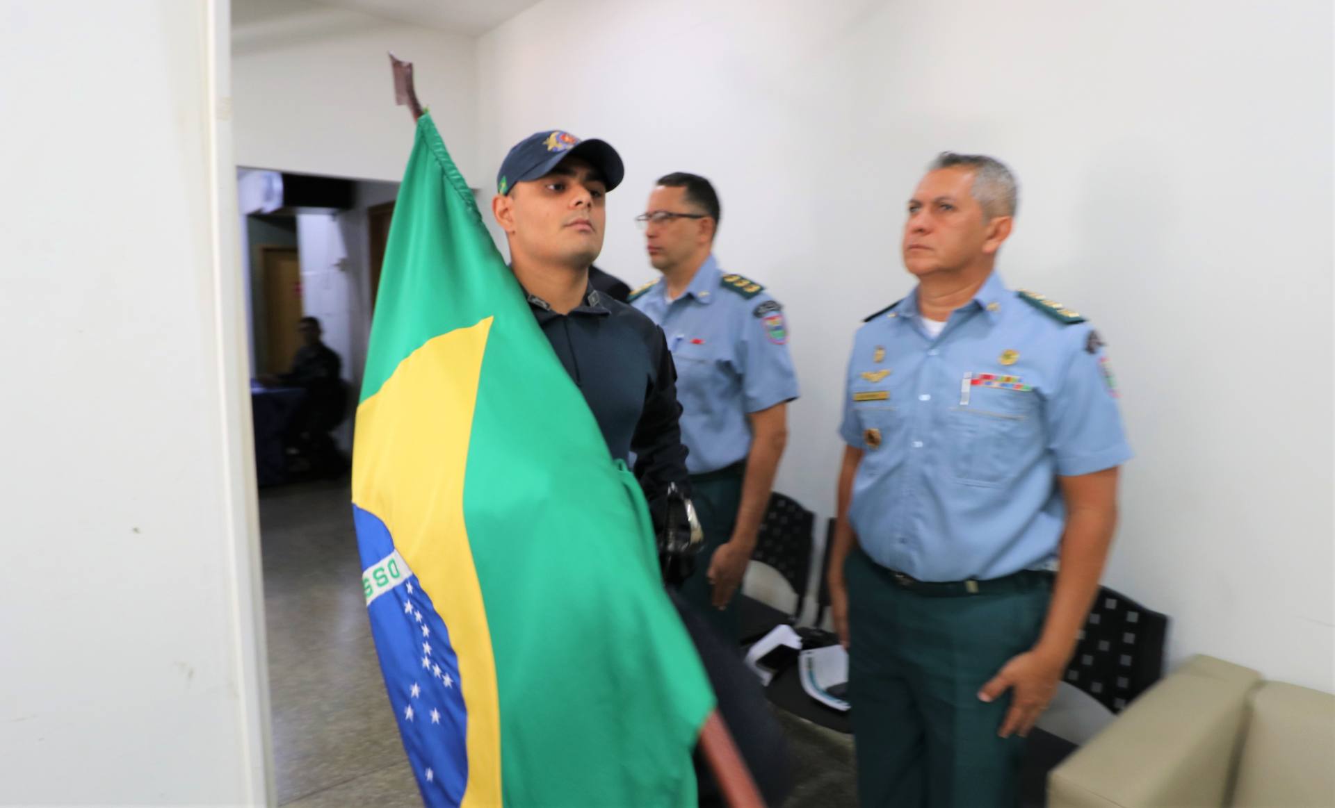 A Bandeira do Brasil foi conduzida pelo 2º tenente PM André Luiz Leonel Andrea.