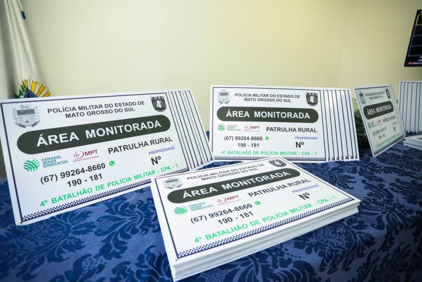 As placas de identificação serão distribuídas por áreas monitoradas pela Patrulha Rural em dez regiões do estado, contemplando propriedades dos 79 municípios. O Sistema Famasul é parceiro da iniciativa na divulgação do programa junto a produtores rurais de todo o estado.