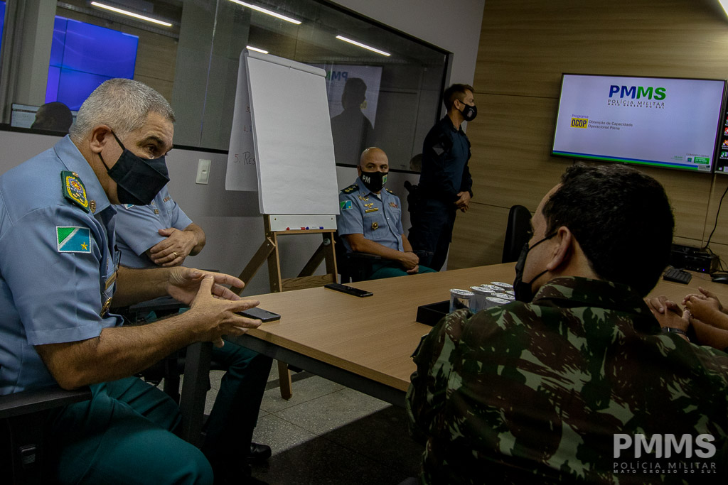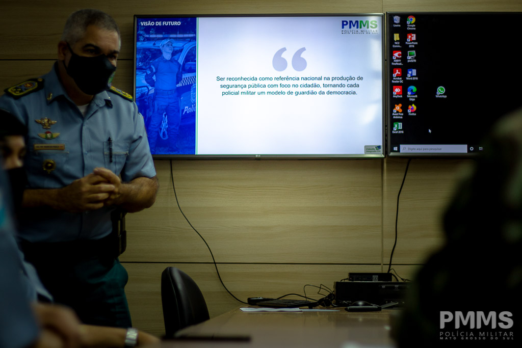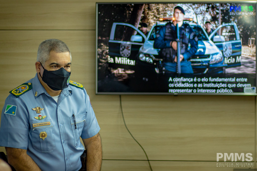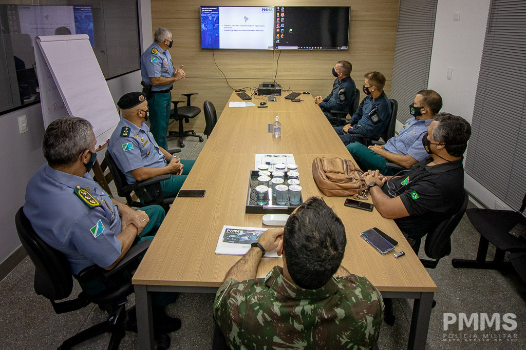 Na reunião, o Comandante-Geral da PMMS – Coronel PM Marcos Paulo Gimenez, apresentou o trabalho que a Instituição vem realizando, bem como o planejamento estratégico, que norteia as ações da Polícia Militar.