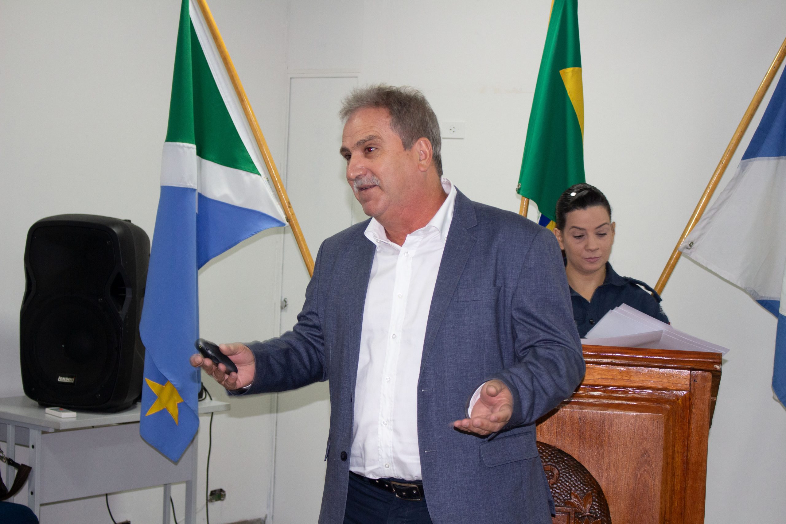 O palestrante Marcos Pulga apresentou uma palestra motivacional em formato de stand up, instigando o comprometimento, responsabilidade, foco e o resultado para o crescimento profissional e pessoal.