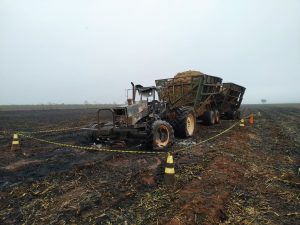 Trator que teria sofrido pane elétrica e teria originado o incêndio